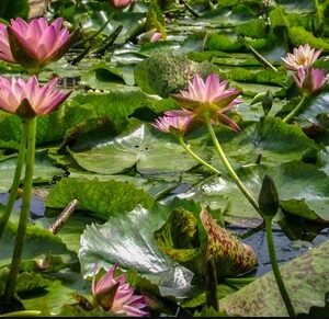 Nymphaea Lynn Ellen has smokey green/yellow blooms, tubers easily, good bloomer and large growth habit.