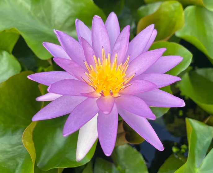 Nymphaea ‘Violicious’ is an exciting new purple hardy waterlily for the market. Lavender purple flowers adorn this quick growing and dividing waterlily. Made from a cross between a hardy waterlily and a tropical waterlily it still retains the hardy traits for overwintering.